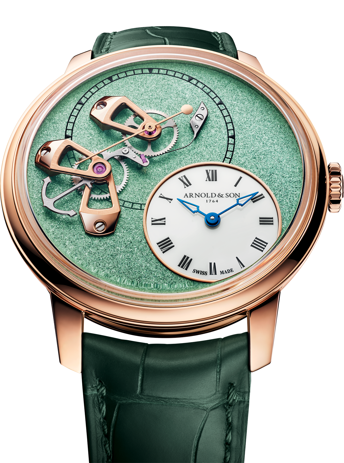 The true-beat seconds function is characteristic of the instruments that John Arnold supplied to the Royal Navy. Their escapement used to beat at one oscillation per second, naturally indicated by a sweep-seconds hand. This explicit function inspired Arnold & Son to create one of its most iconic complications: ‘True Beat’, also known as deadbeat seconds. The distinctive feature of the DSTB collection is that it displays this mechanism in full on the dial, hence the ‘Dial-Side True Beat’ name, delivering watchmaking, design and spectacle all in one.